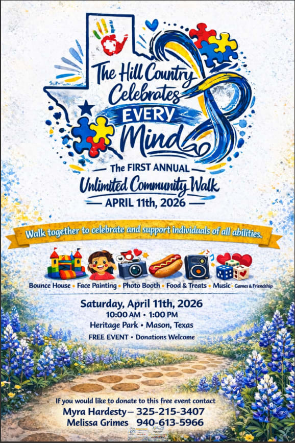 We are so excited to invite all of our friends, family, and the entire HILL COUNTRY to come celebrate our amazing special needs friends at our FIRST Annual Unlimited Community Walk!